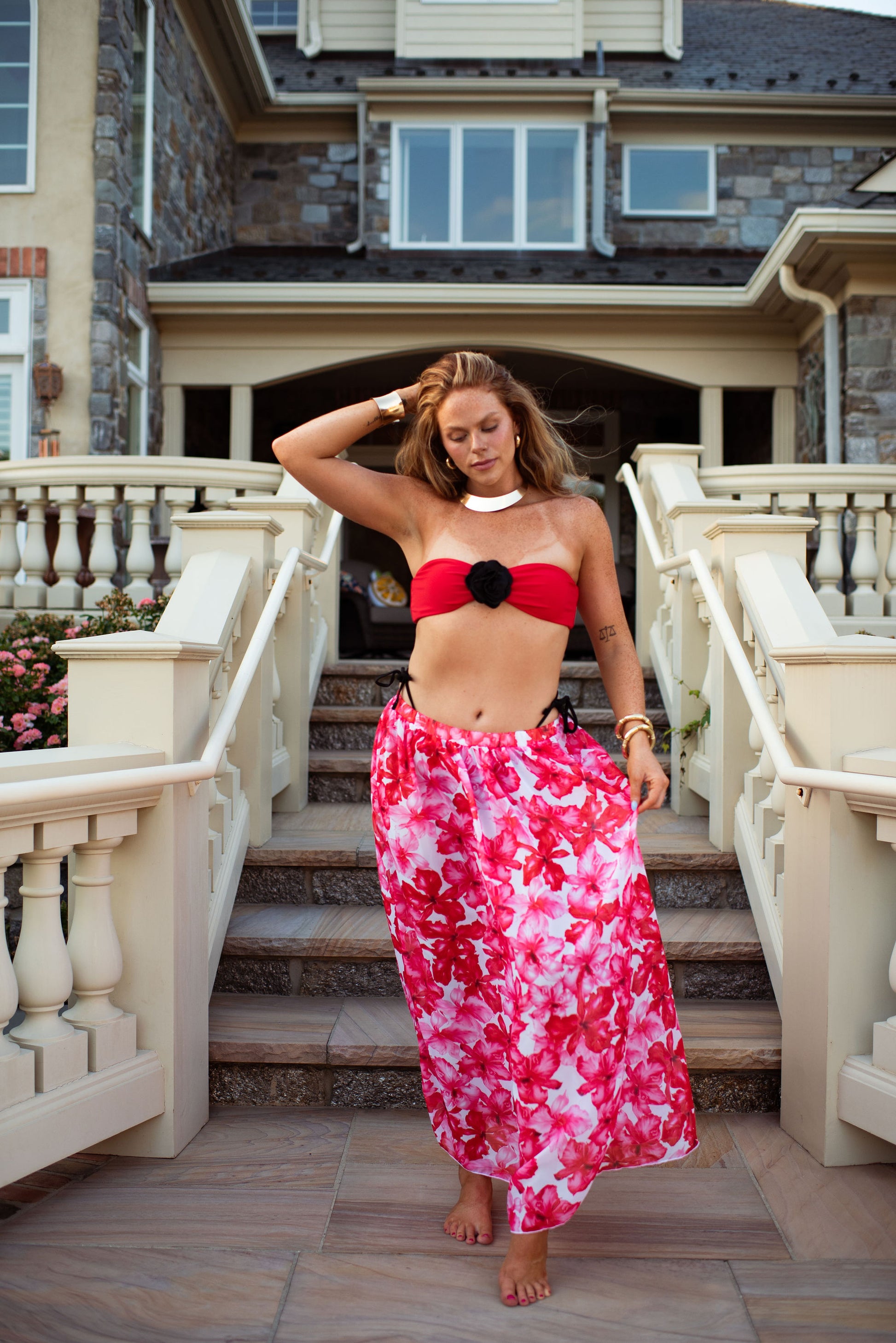 This eye-catching two-piece set features high-quality, stretchy fabric, adorned with exquisite 3D flowers that add a touch of exotic flair. It's perfect for achieving that sun-kissed tan while lounging by the beach or pool.