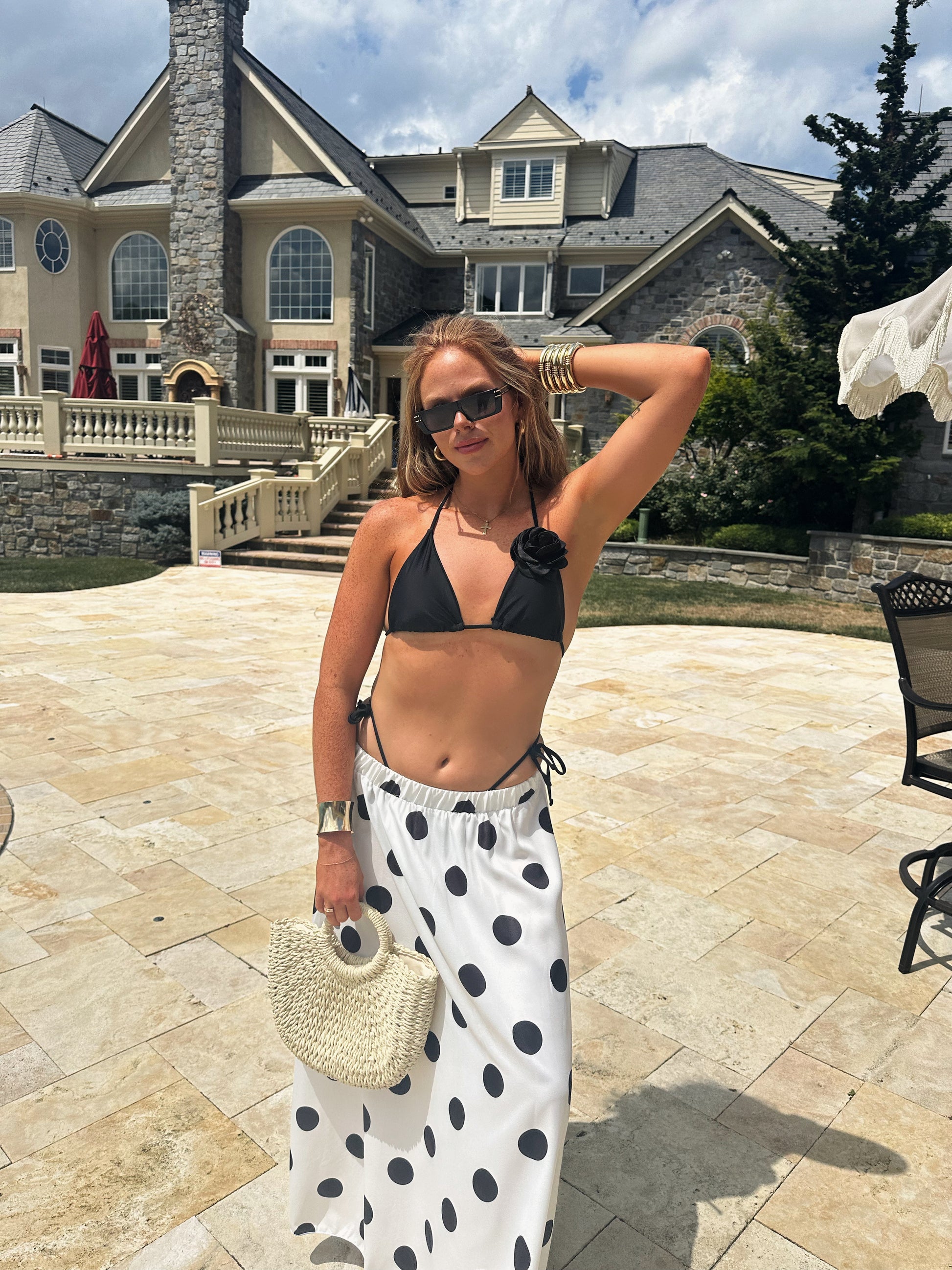 This stunning black bikini features a classic design with a modern twist, perfect for those who appreciate sophisticated style. The adjustable coverage bottoms allow you to customize your fit, offering both comfort and versatility for any beach or poolside occasion.