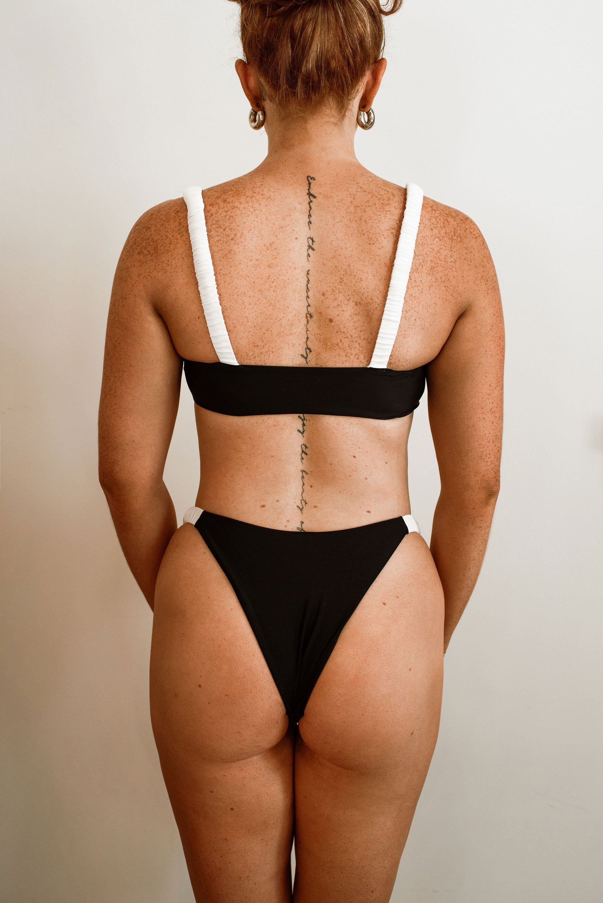 This chic black and white bikini features a sleek design that combines modern elegance with ultimate functionality. The fabric offers exceptional stretch, ensuring a snug yet flexible fit that moves with you, perfect for any beach or poolside activity.